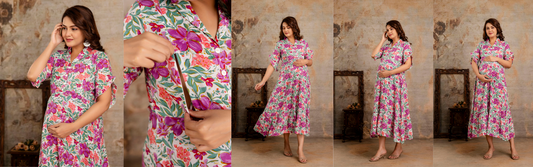 Adaptive Fit for All Trimesters: Designed with stretchy and adjustable cuts, our dresses and kurtis grow with your bump, providing a flattering silhouette throughout your pregnancy and even after.