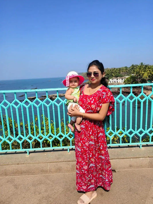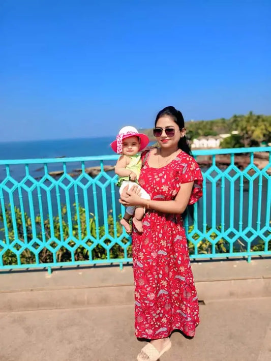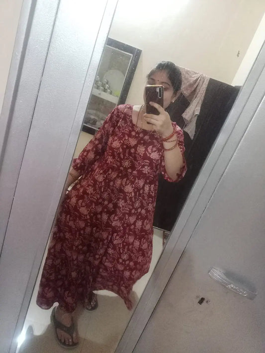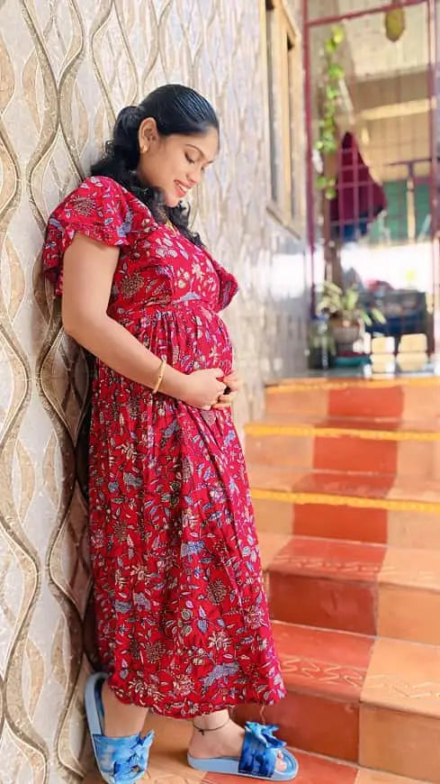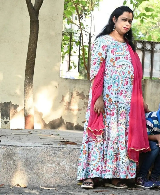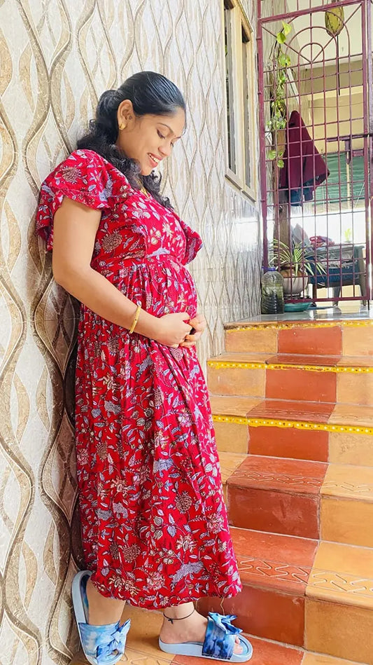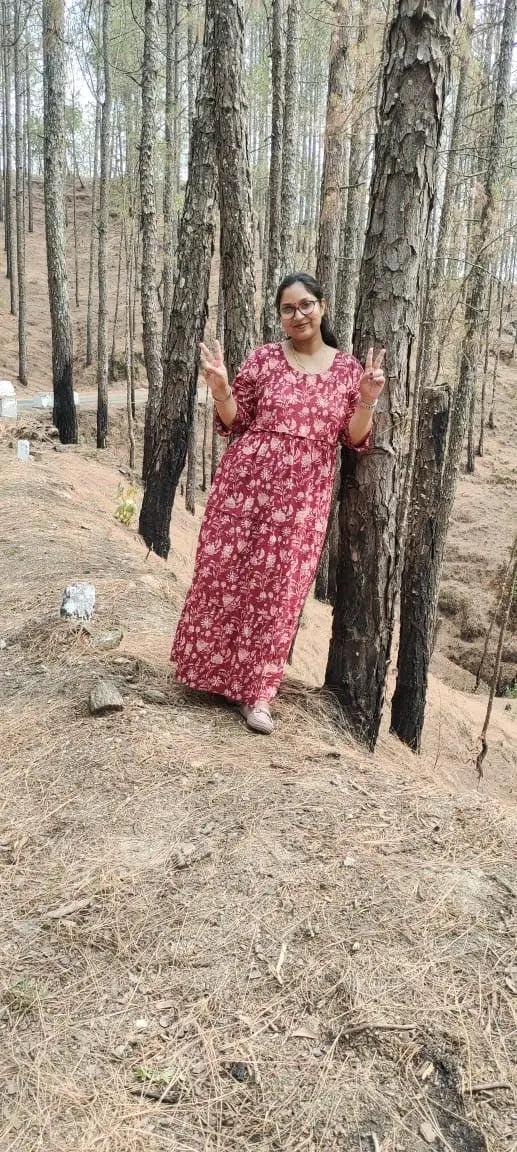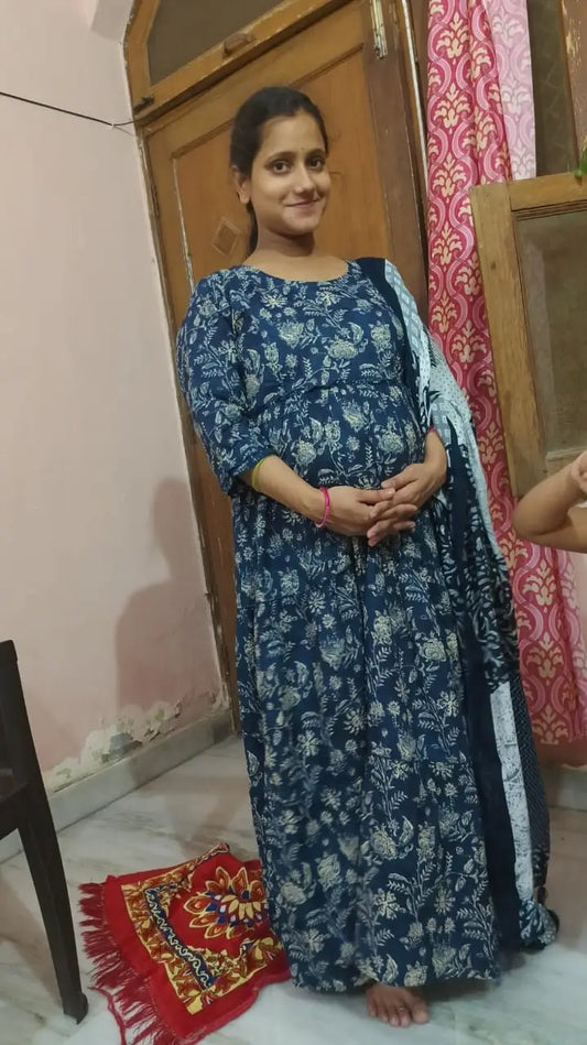 Cotton Maternity Feeding Dress – Elegant Floral Print, Nursing Friendly Kurti / Gown”